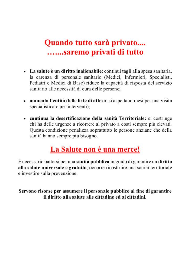 Sabato 27 maggio 2023 si terrà un’importante manifestazione a difesa della sanità pubblica.