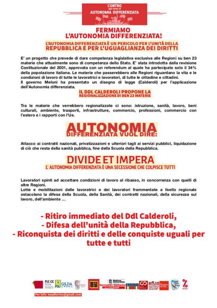 Questa battaglia rientra nella battaglia generale CONTRO OGNI FORMA DI AUTONOMIA DIFFERENZIATA che stiamo portando avanti ormai da tempo.
