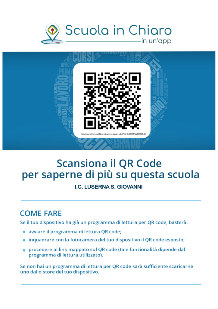 Le iscrizioni si effettueranno tra il 18 gennaio e il 10 febbraio 2024, online per le Scuole Primarie e Secondarie di I grado (sito del Ministero dell’Istruzione e del merito) e in modalità cartacea per le Scuole dell’Infanzia.